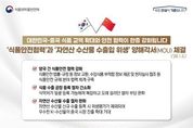 시민행정신문 장규호 기자 | 대한민국-중국 식품 교역 확대와 안전 협력이 한층 강화됩니다. - '식품안전협력'과 '자연산 수산물 수출입 위생' 양해각서(MOU) 체결('26.1.5.) 양국 간 식품안전 협력 강화 식품안전 법률·규정 등 정보 교환, 수입식품 부적합 정보 제공 및 현지실사 협조 등 식품안전 규제 분야 협력 체계 구축 식품 수출 공장 등록 절차 간소화 식약처가 일괄 등록 가능해져 복잡하고 오래 걸리던 절차 부담 완화 자연산 수산물 수출 절차 완화 자연산 수산물 신규 수출 등록 시 위생평가가 제외되어 우수한 K-수산물의 중국 시장 진출 확대 기대 "식약처는 국제 협력을 통해 K-푸드의 글로벌 경쟁력 강화와 수출을 적극 지원하겠습니다."
