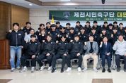 시민행정신문 장규호 기자 | 제천시민축구단 선수단과 구단주의 공식 대면식이 지난 11일 제천시청에서 열렸다. 오는 24일 창단식을 앞두고 열린 이번 대면식에는, 구단주인 김창규 제천시장과 김용기 단장, 선수단 등 관계자들이 참석했다. 선수와 코치진 구성을 마친 제천시민축구단은 구단주와 공식적으로 첫인사를 나누고, 팀의 운영 방향과 시즌 목표를 공유했다. 대면식은 선수단과 코치진 소개, 이번 시즌 운영 계획과 목표 발표, 질의응답 순으로 진행됐다. 김창규 제천시장은 인사말을 통해 선수단을 격려하며, “제천시를 대표하는 시민구단으로서 책임감을 가지고 모든 경기에 최선을 다해달라”고 당부했다. 김용기 단장은 구단 운영 방침과 비전을 소개하며, “제천시와의 협력을 바탕으로 투명하고 신뢰받는 구단을 만들어가겠다”라고 의지를 밝혔다. 한상구 감독은 “2026시즌 목표로 K4리그 상위권 진입과 리그컵 및 코리아컵 3라운드 이상 진출, 충청북도 대표 선발전 승리를 통한 전국체전 우승에 도전하겠다”라며 각오를 밝혔다. 공격수 손주원 선수는 개인 목표를 밝히며, “매 경기 공격 포인트를 기록해 팀에 기여
