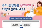 시민행정신문 장규호 기자 | 유기·유실동물 신고체계 어떻게 달라지나요? ■ 유기·유실동물 발견 후 신고 절차 (기존) 개별 지방정부 담당자에게 신고 → 구조, 보호 조치 *지역별로 동물보호센터 등에서 현장 출동 후 구조·보호 (개선) 방법 ① 개별 지방정부 담당자에게 신고 → 구조, 보호 조치 *지역별로 동물보호센터 등에서 현장 출동 후 구조·보호 방법 ② 동물보호상담센터 ☎1577-0954(1) → 관할 지방정부 전화 자동 연결 → 구조, 보호 조치 *지역별로 동물보호센터 등에서 현장 출동 후 구조·보호 방법 ③ 국가동물보호정보시스템 접수 → 접수 내용 관할 지방정부 전달 → 구조, 보호 조치 *지역별로 동물보호센터 등에서 현장 출동 후 구조·보호