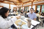 시민행정신문 강갑수 기자 | 대전 동구는 13일 이사동 유교전통의례관 대전별서에서 관내 어린이집 영유아 부모를 대상으로 전통 다도와 향 체험을 결합한 ‘차향유정(茶香有情) 차와 향기를 나누다’ 프로그램을 운영했다고 밝혔다. 이번 프로그램은 육아로 지친 부모들이 바쁜 일상 속에서 잠시나마 자신을 돌보고 내면의 평온을 되찾을 수 있도록 기획된 힐링 프로그램으로, 총 3회에 걸쳐 운영될 예정이다. 첫 회차인 이날 체험에는 박희조 동구청장을 비롯해 영유아 부모 20여 명이 참여해 전문 강사의 지도 아래 차를 우리고 마시는 전통 다도 예절을 배우고, 전통 향을 활용한 명상 활동을 통해 감각을 깨우며 마음을 다스리는 시간을 가졌다. 특히, 단순한 체험을 넘어 전통문화의 정취를 느끼고 바쁜 육아 생활 속에서 마음의 여유를 되찾는 의미 있는 시간으로 꾸며져 참여자들의 큰 호응을 얻었다. 박희조 동구청장은 “이번 다도체험을 통해 부모님들이 짧지만 깊은 쉼 속에서 마음의 여유를 되찾는 시간이 됐길 바란다”며 “앞으로도 전통문화를 쉽고 친근하게 접할 수 있는 다양한 프로그램을 지속적으로 발굴해 나가겠다”고 말했다. &