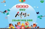 시민행정신문 강갑수 기자 | 양양군이 2026년 설 명절을 맞아 고향사랑기부제 참여 확산을 위해 '붉은 말의 해! 고향사랑기부제 설맞이 이벤트'를 실시한다. 이번 이벤트는 2026년 2월 8일부터 2월 28일까지 진행되며, 행사 기간 중 고향사랑e음 홈페이지를 통해 양양군에 10만 원 이상 기부하고 답례품을 선택한 기부자 가운데 선착순 100명에게 스타벅스 모바일 쿠폰(1만 원권)을 제공한다. 참여 방법은 고향사랑e음 홈페이지에서 양양군에 10만 원 이상 기부 후 답례품을 선택하면 자동으로 응모된다. 단, 이벤트 혜택 제공을 위해 SMS 수신 동의는 필수다. 당첨자는 3월 3일부터 순차적으로 모바일 쿠폰이 발송될 예정이다. 특히 2026년부터 고향사랑기부제 세액공제 혜택이 대폭 강화되면서 기부자 혜택도 크게 늘었다. 10만 원까지는 기부금 전액 세액공제, 10만 원 초과 20만 원 이하 금액에는 기존 16.5%에서 44%로 상향된 공제율이 적용된다. 이에 따라 이벤트 기간 중 10만원을 기부할 경우, 전액 세액공제에 더해 3만원 상당의 답례품, 스타벅스 모바일 쿠폰 1만 원(선착순)까지 받아 총 1
