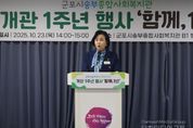 시민행정신문 기자 | 경기도의회 정윤경 부의장(더불어민주당, 군포1)은 23일 군포송부종합사회복지관 개관 1주년 행사에 참석했다. 정윤경 부의장은 이날 축사에서 “송부종합사회복지관은 지난 1년 동안 단순히 복지 서비스를 제공하는 공간이 아니라, 사람과 사람이 마음을 잇는 사랑의 통로가 되어주었다”며 “삶의 무게로 지친 이웃에게 위로를, 외로운 이에게 따뜻한 손길을 건네준 복지관 가족 여러분께 진심으로 감사드린다”고 전했다. 이어 “송부(松富)라는 이름처럼, ‘늘 푸르고 넉넉한 마음’이 이곳을 찾는 시민들의 마음속에도 자라나길 바란다”며 “이곳에서 시민 한 사람 한 사람이 평안을 얻고, 다시 삶의 용기와 행복을 품게 되길 바란다”고 덧붙였다. 개관 1주년 행사장에는 정윤경 부의장의 따뜻한 말처럼, 복지관을 통해 삶의 희망을 찾은 시민들의 표정이 환하게 빛났다. “처음으로 따뜻한 밥 한 끼를 나눴던 곳”, “마음의 상처를 치유받은 곳”, “새로운 꿈을 꾸기 시작한 곳”이라는 말들이 곳곳에서 흘러나오며, 송부복지관이 지난 1년 동안 군포 시민들의 일상 속에서 얼마나 큰 울림을 주었는지 느껴졌다. &nb