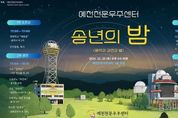 시민행정신문 강갑수 기자 | 예천천문우주센터가 12월 20일 토요일 오후 5시 30분 송년의 밤을 개최한다. 이번 행사는 한 해를 마무리하는 뜻깊은 자리에 센터에 많은 도움을 주신 주민들과 관람객들에게 감사의 마음을 전하기 위해 마련됐다. 송년의 밤은 음악회와 강연 및 공개관측회로 진행된다. 음악회에서는 지역을 대표하는 가수, 소프라노, 연주자들이 참여해 다채롭고 감동적인 무대를 선보일 예정이며, 이후 헬리콥터의 비행 원리에 대한 특별강연이 이루어진다. 음악회와 강연이 끝난 후에는 508mm 대형반사망원경과 다양한 관측장비로 겨울밤 천체를 직접 감상하며 전문해설사의 천체 해설을 들을 수 있는 공개관측회가 진행된다. 이번 행사는 누구나 참석할 수 있고, 예천천문우주센터 관계자는 “2025년은 예천천문우주센터가 야간천체관측을 재개하고 관람객들에게 많은 사랑을 받았던 뜻깊은 한 해였던 만큼 그에 보답하고자 풍성한 송년의 밤을 준비했다”며, “관측을 진행할 때 마다 조기 매진으로 표를 구하기 어려워 문의주시는 분들이 많아 송구한 마음에 이번 공개관측회는 예매 여부와 인원에 제한 없이 많은 분들