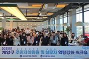 시민행정신문 강갑수 기자 | 인천광역시 계양구는 12월 4일 화개정원 등 강화군 일원에서 주민자치위원 및 실무자 100여 명이 참여한 가운데 ‘2025년 주민자치위원 및 실무자 역량 강화 워크숍’을 성황리에 개최했다. 계양구 주민자치회는 ▲지역 의제 발굴 ▲주민총회 운영 ▲주민참여 확대 ▲공동체 활성화 ▲주민자치센터 프로그램 운영 ▲지역 네트워크 구축 등 지역의 문제를 주민 스스로 찾아 해결하는 핵심 기반 조직으로서 중요한 역할을 수행하고 있다. 이번 워크숍은 현지 탐방 프로그램을 통해 동별 위원들이 서로 교류하며 화합하는 시간으로 마련됐다. 특히 ‘주민자치 지속 가능발전을 위한 집담회’ 특강에서는 주민자치회의 미래 역할과 운영 방향에 대해 논의하는 시간을 가졌다. 윤환 구청장은 “주민 스스로 지역의 미래를 만들어가는 것이 진정한 자치이며, 큰 역할을 감당하고 있는 주민자치위원 및 실무자 여러분께 감사드린다.”라며, “오늘 워크숍이 주민자치위원의 역량을 강화하고 재충전의 시간이 되길 바란다.”라고 전했다. 민종상 주민자치협의회장은 “워크숍을 통해 동 간 소통과 협력이 더욱 강화되길 기대하며, 주민자