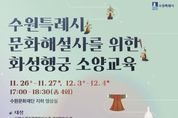 시민행정신문 강갑수 기자 | 수원특례시가 문화해설사를 대상으로 화성행궁 고증 연구 결과를 교육해 ‘연구 기반 문화해설’을 정착시킨다. 수원시는 11월 26~27일, 12월 3~4일 4회에 걸쳐 수원문화재단에서 ‘수원특례시 문화해설사를 위한 화성행궁 소양교육’을 한다. 유네스코독일위원회와 유네스코한국위원회가 지원하는 이번 교육에는 수원문화재단·수원화성박물관·수원청소년청년재단 등에서 수원화성과 화성행궁을 해설하는 문화해설사들이 참여한다. 화성행궁 고증 연구의 성과를 해설 현장에 연결하기 위한 교육이다. 연구를 수행한 전문가들이 강사로 나선다. 강의 주제는 ▲화성행궁의 변화와 이중적 기능(이선희 중앙대 교수) ▲1794년 화성행궁 중심 영역의 건축적 변화(이연노 건축문헌고고스튜디오 건축구조실장) ▲화성행궁의 발굴(이승연 건축문헌고고스튜디어 건축고고실장) ▲화성행궁 생활상 고증과 공간 재현(정정남 건축문헌고고스튜디오 대표) 등이다. 수원시는 화성행궁 2단계 복원을 추진하면서 건축물 외형 복원뿐 아니라, 내부 고증에 대한 연구의 필요성을 인식하고, 2023~2024년 ‘화성행궁 생활상 고증 및 재현 방안 연