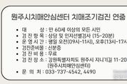 시민행정신문 강갑수 기자 | 원주시치매안심센터는 치매 조기 발견과 적기 치료를 위해 지역 내 60세 이상 주민을 대상으로 치매 조기 검진 사업을 연중 실시하고 있다. 치매 조기 검진은 인지 선별 검사·진단 검사·감별 검사 등 3단계로 진행된다. 먼저 인지 선별 검사 결과, 인지 저하가 의심되는 경우 2단계에서 신경 심리 검사와 전문의 진료를 받게 된다. 이어 3단계에서는 MRI와 혈액검사 등을 통해 치매 여부 및 기타 질환을 최종적으로 확인한다. 치매로 진단받은 환자는 치매 치료 관리비, 조호 물품 지원, 실종 예방 서비스, 쉼터 프로그램 등 다양한 맞춤형 서비스를 이용할 수 있다. 임영옥 센터장은 “기억력 저하 등 치매 증상을 초기에 확인하는 것이 중요한 만큼, 연 1회 치매 조기 검진을 받을 것을 권장한다”라며, “시민들의 적극적인 검진 참여를 바란다”라고 말했다.