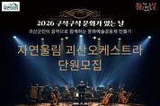 시민행정신문 강갑수 기자 | 충북 괴산문화원은 문화체육관광부와 충청북도, 괴산군이 후원하는 2026년 ‘구석구석 문화가 있는 날’ 사업과 연계해 ‘자연울림 괴산오케스트라’를 창단하고 함께할 단원을 모집한다고 27일 밝혔다. 새롭게 창단하는 자연울림 괴산오케스트라는 괴산 지역 주민이 클래식 음악으로 화합하는 프로그램이다. 선발된 창단 단원에게는 악기 무상 대여, 파트별 개인 지도를 제공하며 성공적인 오케스트라 활동을 적극 지원할 계획이다. 김춘수 괴산문화원장은 “자연과 음악이 어우러지는 괴산의 첫 번째 선율을 만들어갈 주인공을 찾는다”라며 “음악에 열정이 있는 군민 여러분의 적극적인 참여를 바란다”고 말했다.
