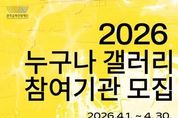 시민행정신문 강갑수 기자 | (재)완주문화관광재단은 관내 소장품을 활용하여 군민들의 일상 생활권 내 전시 활성화를 도모하는 '2026 누구나 갤러리 : 완주 작가 작품 대여‧전시'참여기관을 오는 4월 30일까지 모집한다고 밝혔다. ‘누구나 갤러리’는 2022년부터 지역 내 유휴공간을 발굴하여 전시 공간으로 조성하는 사업으로, 올해는 관내 3개소 내외를 선정할 계획이다. 선정된 기관에는 완주 작가의 소장 미술작품을 무상 대여하며, 공간 맞춤형 큐레이션(작품 소개글, 캡션 등)을 포함하여 ‘전시 운영 패키지’를 함께 지원한다. 신청 자격은 전시 가능한 유휴 벽면을 보유한 완주군 소재 기관‧기업‧단체다. 선정된 기관은 작품 안전관리를 담당하며, 벽면 페인팅, 조명 설치 등 전시 공간 조성 비용을 분담하게 된다. 정철우 완주문화관광재단 상임이사는 “이번 사업을 통해 지역 작가들의 작품이 군민들의 일상속으로 더 가까이 다가가길 기대한다.”며, “완주군 곳곳의 유휴 공간이 품격 있는 갤러리로 변신할 수 있도록 많은 관심과 신청을 바란다.”고 전했다. 보다 자세한 내용은 완주문화관광