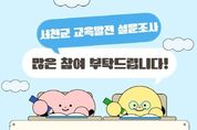 시민행정신문 강갑수 기자 | 서천군은 지역 교육 발전을 위한 중장기 종합계획을 수립하기 위해 관내 초등학교 4~6학년, 중·고등학생 및 학부모를 대상으로 교육 수요 설문조사를 실시한다. 이번 설문조사는 학령인구 급감과 학교 통‧폐합 위기, 지역 청년 인구 유출 등 서천이 직면한 교육 현안을 군민과 함께 해결하기 위한 첫걸음으로 마련됐다. 군은 이번 조사를 통해 군민이 바라는 교육환경, 교육지원 과제, 향후 발전 방향에 대한 의견을 폭넓게 수렴할 예정이다. 응답 결과는 향후 교육환경 개선 정책 등 다양한 군 교육정책과 사업 발굴에 중요한 기초자료로 활용된다. 김기웅 군수는 “교육은 지역의 미래를 좌우하는 핵심 기반”이라며, “군민 여러분의 의견이 담긴 이번 설문조사가 우리 아이들이 다니고 싶고, 학부모가 만족하며, 지역이 함께 키우는 서천교육의 밑거름이 될 것”이라고 강조했다. 한편, 설문은 10월 22일부터 10월 31일까지 진행되며 ▲서천군청 누리집 공지사항, ▲온라인 네이버폼, ▲지역밴드, ▲학교기관을 통한 배부 등으로 다양하게 운영된다.