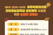 시민행정신문 강갑수 기자 | 제주특별자치도가 향후 5년간 제주 친환경농업의 발전 방향을 담은 ‘제6차 친환경농업육성 실천계획(2026~2030)’ 수립을 위해 농업 현장의 목소리를 직접 듣는다. 제주도는 11월 4일 오후 3시 제주농어업인회관 대강당에서 친환경농업인과 관련 단체를 대상으로 실천계획 설명회를 개최한다. 친환경농업육성 실천계획은 '제주특별자치도 친환경농업 육성 조례' 제3조에 따라 5년마다 수립하는 법정계획으로, 제주도는 제5차 실천계획(2021~2025) 만료에 따라 제6차 실천계획을 수립하고 있다. 제주도는 올해 6월부터 원탁회의와 단체 간담회 등을 통해 현장의 다양한 목소리를 들어왔다. 이 과정에서 농업인들은 경영비 부담과 인력난 해소, 지리적 특성과 유통 구조 제약에 따른 친환경농산물 전용 물류센터 설립, 공공급식 확대, 친환경농업 분야 탄소중립 추진, 재해보험 신설, 인증제도 개선 등의 필요성을 제기했다. 제주도는 이러한 의견을 바탕으로 제도 개선이 필요한 사항은 농림축산식품부와 협의하고, 도 자체적으로 추진 가능한 과제는 제주 특성에 맞게 발굴해 실천계획 초안을