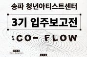 시민행정신문 이존영 기자 | 서울 송파구는 송파청년아티스트센터 제3기 입주작가 10인의 첫 전시 ‘Co-Flow’를 3월 10일 개최했다고 밝혔다. 전시는 송파를 대표하는 문화예술공간인 송파청년아티스트센터와 송파구립 예송미술관 두 곳에서 진행된다. 전시명 ‘Co-Flow’는 서로 다른 흐름이 나란히 이어지는 상태를 뜻한다. 입주작가들이 각자의 작업 세계를 처음 선보이는 자리다. 서로 다른 작업 방식을 지닌 10인의 예술가가 같은 시간 속에서 작업을 이어간다는 의미를 담았다. 전시에는 회화, 사진, 공예, 설치미술, 퍼포먼스 등 다양한 장르의 작품 65점이 선보인다. 제3기 입주작가 권봉균, 김다솔, 김문빈, 김혜정, 명진, 민주미, 서혜인, 이유빈, 티조현리, 허유 등 10인이 참여해 각자의 작업 세계를 펼친다. 예송미술관에서는 36점이 3월 27일까지 전시된다. 평일 오전 10시부터 오후 6시까지 관람할 수 있다. 청년아티스트센터에서는 29점이 4월 25일까지 전시된다. 운영 시간은 동일하며, 일요일과 공휴일은 휴관이다. 한편, 송파청년아티스트센터는 청년 예술인의 창작 활동을 지원하기