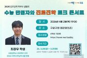 시민행정신문 강갑수 기자 | 구로구가 오는 4월 2일 구로구청 대강당에서 ‘2026 수능 만점자와 진로진학 토크콘서트’를 개최한다. 이번 토크콘서트는 대학수학능력시험 만점자의 실제 경험을 바탕으로 효과적인 학습 방법과 진로·진학 전략을 공유하고, 청소년과 학부모의 궁금증을 해소하기 위해 마련됐다. 강연자로는 2026학년도 대학수학능력시험 만점자인 최장우 학생(서울대학교 경제학부 재학)이 나선다. 최장우 학생은 ‘유 퀴즈 온 더 블록’, ‘뉴스투데이’, ‘김현정의 뉴스쇼’ 등 다양한 방송과 유튜브 채널에 출연해 주목받았다. 이날 특강은 관내 중‧고등학생 및 학부모 150명을 대상으로 4월 2일 오후 7시부터 8시 30분까지 진행된다. 전문 사회자의 진행으로 사전 접수된 질문 중 5가지를 선정해 답변하고, 청소년과 학부모에게 전하고 싶은 메시지도 함께 전달할 예정이다. 이어 현장 참여자들과의 즉석 질의응답을 통해 보다 구체적이고 실질적인 상담을 진행하고, 행사 종료 후에는 만족도 조사와 기념사진 촬영으로 마무리한다. 신청은 3월 31일까지 홍보 안내문의 큐알(QR)을 통해 선착순으로 접수한
