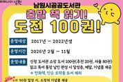 시민행정신문 강갑수 기자 | 남원시공공도서관에서는 어린이들에게 책 읽기의 즐거움과 독서 습관 형성을 위하여 2월부터 11월까지 ‘출발 책 읽기 도전 100권’ 프로그램을 운영한다. 이 프로그램은 어린이가 스스로 선정한 그림책 80권과 사서가 추천한 그림책 20권을 모두 읽으면 목표를 달성하는 것으로, 어린이들에게 성취감 및 자기 주도적 독서 습관을 기르고 도서관 이용 활성화를 위해 마련됐다. 시민 중 2017년~2022년생 누구나 참여할 수 있으며, 기존 초등 2학년까지였던 대상을 올해는 3학년까지 한 학년 확대해 기회의 폭을 넓히고자 한다. 프로그램 참여 어린이에게는 독서 통장을 제공하고, 책을 읽을 때마다 독서 통장에 적어 최종 100권까지 채우도록 한다. 50권 완성 시 소정의 기념품을 제공하여 100권 완성을 위한 동기 부여 및 의욕을 고취하고자 하며, 공공도서관 통합하여 선착순 60명에게 독서 통장을 완성하면 인증서와 메달, 기념품을 수여한다. 신청은 방문 접수를 통해 할 수 있으며, 자세한 참여 방법은 남원시공공도서관 누리집 공지 사항을 확인하거나 어울림, 시립, 어린이청소년
