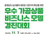 시민행정신문 강갑수 기자 | 충남도 농업기술원은 오는 11월 7일 농가공경영체와 전문가, 일반 소비자 등 300여 명이 참석한 가운데 ‘2025년 우수 가공상품 비즈니스 모델 경진대회’를 개최한다고 30일 밝혔다. 이번 대회는 지역 농업인이 직접 개발·생산한 농산물 가공상품의 경쟁력과 사업성을 평가하고, 소비자와의 소통을 통해 충남 농산물의 새로운 시장가치를 확산하기 위해 마련했다. 행사장에서는 15개 시군을 대표하는 농업경영체 30여 곳이 참여해 지역 농산물을 활용한 다양한 가공상품을 선보인다. 도 농업기술원은 창의성·브랜드 이미지·시장성 등 3개 항목에서 전문가 심사를 거쳐 도지사상 4점을 수여할 예정이다. 일반 소비자가 직접 참여하는 ‘소비자 반응조사’도 함께 진행된다. 조사는 소비자들이 각 제품의 맛·당도·식감 등을 평가하고, 가장 선호하는 상품에 투표하는 방식인 만큼 단순한 품평을 넘어 소비자 중심의 제품 개선 방향을 제시하는 현장형 데이터로 활용할 계획이다. 소비자 참여 확대를 위해 ‘지역농산물 활용 바른 식생활 체험 프로그램’도 운영한다. 주요 프