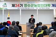 시민행정신문 강갑수 기자 | 장수군은 4일 농업기술센터 대강의실에서 교육생 80여 명이 참석한 가운데 ‘제24기 장수군 농업인대학’ 개강식을 개최하고 본격적인 교육 운영에 들어갔다. 이날 개강식은 최훈식 장수군수의 격려사를 시작으로 교육 일정과 운영 방향 안내, AI 활용 농업 경영 및 마케팅 특강 순으로 진행됐으며 변화하는 농업 환경에 능동적으로 대응하기 위한 교육의 출발을 알렸다. 올해 농업인대학은 △사과반 △두릅반 △신규농업인 기초영농반 등 3개 과정으로 운영되며 3월부터 11월까지 총 33회, 142시간에 걸쳐 체계적인 교육이 진행된다. 군은 각 과정마다 전문 강사진의 지도 아래 이론 교육과 현장 실습을 병행하는 방식으로 운영해 작목별 전문기술 습득과 농업 경영 역량 강화를 동시에 도모할 계획이다. 이를 통해 농업인들이 생산기술뿐만 아니라 경영과 마케팅 능력을 함께 갖춘 전문 농업인으로 성장할 수 있도록 교육의 실효성을 높이고자 한다. 특히 군은 최근 농업 분야에서도 디지털 전환이 가속화되는 흐름을 반영해 AI 기반 농업 경영과 온라인 마케팅 전략을 접목한 특강을 마련해 농업인의