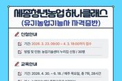 시민행정신문 강갑수 기자 | 세종시농업기술센터가 23일부터 오는 4월 3일까지 청년농업인의 전문역량을 강화하기 위한 ‘2026년 세종청년농업 하나클래스 교육’의 참가자를 모집한다. 이번 교육은 청년농업인과 예비 청년농업인의 유기농업기능사 자격증 취득을 목표로 한 이론과 실기 중심의 맞춤형 과정으로 구성됐다. 주요 내용은 ▲유기농업 재배 기초 ▲토양 및 생육관리 ▲기출문제 풀이 및 모의고사 등으로, 내달 30일부터 6월 18일까지 총 7회에 걸쳐 28시간 과정으로 진행된다. 농업기술센터는 필기시험 대비 과정과 실기시험 대비 과정을 함께 운영해 교육생의 자격증 취득을 지원할 계획이다. 모집 대상은 공고일 기준 세종시에 주소를 둔 45세 미만 청년층으로, 교육생 30명을 선발할 예정이다. 신청은 23일부터 4월 3일까지 농업기술센터 누리집을 통해 하면 되고, 자세한 내용은 누리집 내 교육소식을 참고하면 된다. 피옥자 농업기술센터 소장은 “이번 교육은 청년농업인의 전문성 향상과 자격증 취득을 지원하기 위한 과정”이라며 “실무 중심 교육을 통해 경쟁력 있는 청년농업인을 육성해 나가겠