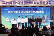 시민행정신문 기자 | 대구 달서구는 10월 31일 광주광역시 교통문화연수원에서 열린‘제26회 영·호남 장애인 친선교류대회’가 두 지역 장애인 간 우정과 화합의 열기 속에 성황리에 마무리됐다고 밝혔다. 이번 행사는‘지역과 차이를 넘어, 영호남의 마음을 잇다!’를 슬로건으로, 달서구와 광주 북구의 장애인들이 한자리에 모여 상호 이해와 우정을 나누는 화합의 장으로 마련됐다. 이날 교류회에는 두 지역의 장애인과 자원봉사자 등 400여 명이 참석해 다양한 공연과 프로그램을 함께 즐기며 웃음과 감동이 어우러진 뜻깊은 시간을 보냈다. 식전에는 팝플루티스트 ‘나리’의 공연이 분위기를 돋우었고, 이어 개회식과 교류 기념 영상 상영, 기념품 교환, 친선 퍼포먼스, 기념촬영 등이 차례로 진행됐다. 오후에는 댄스·트로트 공연, 장기자랑, 영호남 퀴즈와 레크리에이션이 이어지며 참가자 모두가 한마음으로 어울리는 진정한 화합의 한마당이 펼쳐졌다. 한편, 영·호남 장애인 친선교류대회는 1997년 첫 대회를 시작으로 올해 26회째를 맞았으며, 달서구와 광주 북구가 매년 번갈아 개최해오고 있다. 지금까지
