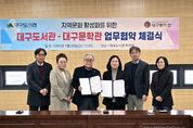 시민행정신문 강갑수 기자 | 대구문학관과 대구도서관은 지난 1월 30일 독서문화 진흥과 지역문화 활성화를 위한 업무협약을 체결했다. 대구도서관에서 열린 이번 협약식에는 하청호 대구문학관 관장과 권현주 대구도서관 관장 외 각 기관의 실무자들이 참석하여, 두 기관의 상호협력 방안을 공유하며 지역 문학 및 문화예술의 가치 확산을 위한 활동을 공동으로 추진하는 데 뜻을 모았다. 양 기관은 이번 업무협약을 시작으로 앞으로 독서문화 진흥을 위한 사업 발굴 및 추진, 독서문화 프로그램 운영을 위한 전문 강사 및 인력 지원, 전시 및 문학 프로그램 운영 협업 활동을 함께 적극적으로 펼쳐 나갈 계획이다. 양 기관의 대표는 “지역에서 독서 및 문학향유의 중심에 선 두 기관 간의 이번 업무협약을 계기로 앞으로 양질의 창의적인 프로그램 개발을 통해 서로 간의 인적, 물적 교류가 활발하게 이루어져 지역의 독서문화를 선도해 갈 수 있기를 희망한다.”고 이번 업무협약에 대한 기대를 밝혔다.