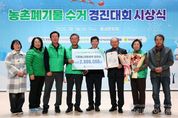 시민행정신문 김학영 기자 | 충남도가 농촌폐기물 수거체계 개선에 앞장서 온 우수마을을 표창하고, 그동안 추진한 사업의 성과를 공유하는 자리를 마련했다. 도는 16일 홍성문화원에서 박정주 도 행정부지사를 비롯해 송근선 한국환경공단 충청권본부 자원순환관리처장, 정해웅 농협중앙회 충남세종본부장, 이민수 한국농어촌공사 충남본부장, 성낙구 도 새마을회장, 시군 관계자 등 200여 명이 참석한 가운데, ‘2025년 농촌폐기물 수거 경진대회 시상식’을 개최했다. 도와 한국환경공단, 농협중앙회, 한국농어촌공사가 공동주최한 이날 행사는 △폐기물관리 유공자 표창 △우수마을 시상 △농촌폐기물 관리 레크리에이션 순으로 진행됐다. 심사는 지난해 11월부터 올해 10월까지 수거 실적(계량)과 수거 노력(비계량) 등을 종합해 기후에너지환경부 장관상 1곳, 한국환경공단 이사장상 4곳, 농협중앙회장상 10곳, 한국농어촌공사 사장상 3곳 등 총 18개 마을을 선정했다. 특별상인 한국농어촌공사 사장상은 폐비닐 발생량이 적은 소규모 마을에도 동기를 부여하기 위해 전년 대비 향상도가 높은 마을을 선정해 시상했다. 영예의