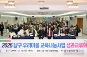 시민행정신문 강갑수 기자 | 대구 남구는 지난 12월 10일, 구청 드림피아홀에서 동별 추진위원과 청소년 등 100여 명이 참석한 가운데 ‘2025년 남구 우리마을 교육나눔사업 성과교류회’를 개최했다. 대구 남구 우리마을 교육나눔사업은 이천동, 봉덕3동, 대명2동, 대명4동, 대명5동, 대명6동, 대명9동, 대명11동 총 8개 마을에서 참여하고 있으며, 동별 추진위원회를 중심으로 동 행정복지센터, 학교 등 유관기관과 교육협력 네트워크를 구축하여 다양한 프로그램을 진행하며 마을 청소년 육성·보호에 앞장서고 있다. 이번 성과교류회는 지난 1년 간의 우리마을 교육나눔사업 추진실적과 각 마을별 활동 프로그램 공유, 유공 추진위원 8명 및 청소년 8명에 대한 표창장 수여, 공예체험 등의 순서로 진행됐으며, 특히 대명6동 청소년들의 복타공연과 대명5동 청소년들의 기타연주 공연으로 더욱 풍성하고 뜻깊은 교류의 장이 됐다. 조재구 남구청장은 “ ‘삶의 과정이 곧 교육의 과정’이라는 말처럼 생활 현장인 마을이 청소년의 보호와 육성 등 교육의 터전”이라며, “마을 전체가 청소년들의 건전한 성장을 위한 배움터가 될 수 있도록 남