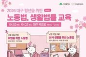시민행정신문 강갑수 기자 | 대구광역시는 지역 청년들의 노동권 보호와 법적 권리 인식 제고를 위해 ‘대구 청년을 위한 노동법·생활법률 교육’을 오는 4월부터 본격 추진한다. 이번 교육은 대구 미취업 청년, 사회 초년생, 청년 창업가를 대상으로 하며 2026년 4월부터 11월까지 총 3개 시즌으로 나눠 운영된다. 시즌별 4회씩, 총 12회의 전문가 교육 프로그램이 진행될 예정이며, 시즌1 교육 프로그램은 4월 2일부터 4월 23일까지 매주 목요일 오후 7시부터 9시까지 진행된다. 교육 내용은 청년들의 취업 전·후, 퇴사 시, 창업 등 진로 선택에 맞춰 구성돼 근로계약서 작성, 최저임금, 연차 사용 등 노동법과 임대차계약, 부동산 권리, 저작권 등 생활법률 정보를 제공하는 데 중점을 둔다. 특히 강의와 함께 질의응답 및 상담도 병행해 참여자들이 실제로 겪는 법률 문제에 대해 실질적인 도움을 받을 수 있도록 구성했다. 아울러 청년들의 관심이 높은 주요 법률 이슈를 보다 쉽게 이해할 수 있도록 명사 초청 방식의 청년 법률특강도 2회 진행할 예정이다. 교육은 대구시청년센터 공감그래에서 진행되며,