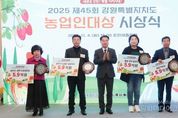 시민행정신문 강갑수 기자 | 강원특별자치도는 강원일보사와 공동으로 11월 4일 오전 11시, 춘천 세종호텔에서 '2025 제45회 강원특별자치도 농업인대상 시상식'을 개최했다. 이날 행사에는 여중협 행정부지사, 박진오 강원일보사장, 김용복 강원특별자치도의회 부의장을 비롯해 도의원, 농업인대상 수상자와 가족, 농협중앙회 강원지역본부장, 도 농업인단체 총연합회장 및 회원 단체장 등 150여 명이 참석했다. 올해로 45회를 맞은 강원특별자치도 농업인대상은 1981년부터 강원특별자치도와 강원일보사가 공동 주최해온 강원 농업 분야의 최고 권위 있는 상으로, 매년 도내 우수 농업인과 농업단체를 선정해 시상하고 있으며, 2024년까지 총 300명이 수상의 영예를 안았다. 이번 시상식에서는 농업·농촌 발전에 기여한 5개 부문 수상자 5명에게 상패가 수여됐다. 부문별 수상자는 △친환경농업부문 영농조합법인 강원유기농, △수출유통부문 농업회사법인 솜씨가㈜, △축산발전부문 김진선, △미래농업육성부문 추경진, △농촌융복합산업부문 해담마을 영농조합법인이다. 아울러 농촌마을활력프로젝트 우수마을로 선정된 4개 마을