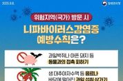시민행정신문 기자 | 평택시는 최근 인도(서벵골주)에서의 니파바이러스 감염증 환자가 발생하여 해당 국가를 방문하는 시민들에게 감염 예방을 위한 각별한 주의를 당부했다. 니파바이러스 감염증은 1998년 말레이시아에서 처음 보고된 인수공통감염병으로, 인도(누적 환자 104명, 사망 72명), 방글라데시(누적 환자 343명, 사망 245명) 등 아시아 지역에서 산발적으로 발생했고 발열, 두통, 근육통 등으로 시작하여 의식 장애 등 신경계 증상으로 악화되는 것으로 알려져 있다. 또한 치명률은 40~75%에 이르고 현재 치료제 및 백신이 없으므로 감염 예방이 매우 중요하다. 발생 국가 여행 시에는 ▲과일박쥐나 아픈 돼지 등 동물과의 접촉 피하기 ▲생 대추야자수액 등 오염된 음료나 바닥에 떨어진 과일 섭취 금지 ▲환자의 혈액·체액 접촉 피하기 ▲30초 이상 손 씻기 ▲씻지 않은 손으로 눈, 코, 입 만지지 않기 등의 예방수칙을 철저히 준수해야 한다. 귀국 후 14일 이내에 의심 증상 발생 시 질병관리청 또는 관할 보건소로 신고해야 한다. 평택시 송탄보건소 관계자는 “니파바이러스 감염증은 사망률이 높지만 개인 위생수칙을
