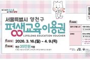 시민행정신문 강갑수 기자 | 양천구는 구민의 역량 개발과 평생학습 기회 확대를 위해 ‘2026년 평생교육이용권 지원사업’을 본격 추진하고, 4월 9일까지 신청자를 모집한다고 밝혔다. 올해 지원 규모는 총 847명이며, ▲일반 저소득(19세 이상 기초생활수급자 및 차상위) ▲디지털(30세 이상) ▲노인(65세 이상) ▲장애인(19세 이상 등록 장애인) 등 4개 분야로 나눠 모집한다. 선정된 대상자에게는 1인당 35만 원의 포인트가 지급되며, 양천구 평생학습관을 포함해 평생교육이용권 사용 등록기관(전국 3,651개, 양천구 22개 기관)에서 강좌 수강료와 교재비로 사용할 수 있다. 단, 디지털 이용권은 인공지능·정보기술 교육 등 미래 역량 강화를 위한 강좌를 운영하는 지정기관에서만 사용 가능하다. 사용 기간은 포인트 지급일부터 2026년 12월 31일까지이며, 기간 내 사용하지 않은 금액은 자동 소멸한다. 신청 대상은 19세 이상 양천구민이며, 일반·디지털·노인 분야는 서울시 평생교육이용권 누리집에서, 장애인 분야는 정부24 누리집에서 신청할 수 있다. 65세 이상 또는 장애인은 양천구 평생학습관 방문