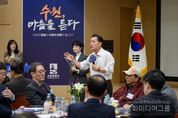 시민행정신문 강갑수 기자 | 3일 행궁동 선경도서관 강당에서 열린 27번째 새빛만남. 49년 동안 부녀회장으로 활동하고 있다는 전영숙 행궁동 새마을부녀회장이 질문 기회를 얻었다. 전영숙 회장은 12년 전 행궁동에서 열린 생태교통 수원 2013 축제 준비 과정을 회상하며 “낙후됐던 행궁동을 수많은 사람이 찾는, 아름다운 마을로 바꿔준 수원시에 감사드린다”고 말했다. 이재준 시장은 “주민들이 협조해 주신 덕분에 생태교통 수원 2013을 잘 치를 수 있었고, 축제 이후 행궁동은 전국적으로 이름이 알려진 명소가 됐다”고 말했다. 행궁동 새빛만남은 그 어느 때보다 주민들의 질문 열기가 뜨거웠다. 질문할 주민을 지목할 때마다 10여 명이 손을 들었다. 이날 새빛만남에서는 생태교통 수원 2013에 관한 이야기가 많이 나왔다. 수원시는 낙후되고 침체했던 행궁동 일원을 정비해 2013년 9월 세계 최초로 ‘생태교통 수원 2013’ 축제를 열었다. 축제가 열리는 한 달 동안 행궁동은 ‘차 없는 마을’로 운영해야 했고, 주민들은 반대했다. 수원시는 행궁동에 현장 사무소를 설치했고, 당시 제2부시장이었던 이재준 시장과