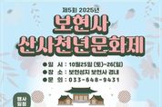 시민행정신문 강갑수 기자 | 강릉시 보현사는 오는 10월 25일부터 26일까지 이틀간 보현성지 보현사 경내에서 2025 보현사 산사 천년문화제를 개최한다. 이번 행사는 천년 고찰 보현사의 역사와 정신을 되새기며, 시민과 관광객이 함께하는 전통문화 축제로 마련됐다. 보현사 산사 천년문화제는 국민의 안녕과 지역의 평안을 기원하는 산신대제를 시작으로 삼대화상 다례제와 산사음악회를 비롯해, 사찰의 고즈넉한 정취 속에서 시민이 함께 참여할 수 있는 다양한 프로그램으로 진행된다. 전통차 체험과 더불어 사찰음식과 강릉 향토음식도 선보인다. 1일차 주요 행사로는 우리의 전통 다례제와 함께 국악과 현대음악이 어우러지는 산사음악회가 열린다. 참가자들은 차 한 잔에 담긴 여유를 나누고, 깊은 울림의 음악을 통해 특별한 감동을 경험하게 된다. 또한 사찰음식과 향토음식 전시는 행사 기간 이틀간 상시 운영된다. 수행자의 지혜와 전통이 담긴 건강한 사찰음식과 지역 고유의 향토음식을 직접 관람하며, 사찰과 지역 식문화의 깊은 맛과 멋을 체험할 수 있다. 허동욱 문화유산과장은