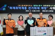 시민행정신문 강갑수 기자 | 광명소방서는 11월 4일 오후 4시, 광명소방서 2층 소회의실에서 (주)글로벌이지스, 광명희망나기운동본부와 함께 사회공헌 기탁식을 진행했다고 밝혔다. 이번 기탁식은 겨울철 소방안전대책의 일환으로 추진되는 ‘화재취약계층 전기화재 예방사업’의 일환으로 마련됐다. 이날 글로벌이지스는 전기 과부하로 인한 화재를 초기에 차단할 수 있는 자동소화멀티탭(엘리펀탭) 312개를 광명희망나기운동본부를 통해 기탁했으며, 기탁 물품은 겨울철 화재위험이 높은 취약계층 가정에 순차적으로 전달될 예정이다. 특히, 전기화재 예방 제품을 개발해 온 글로벌이지스와 지역 복지안전망 역할을 수행 중인 광명희망나기운동본부가 함께한 이번 협력은 민간기업과 공공기관이 힘을 모아 시민의 안전을 지키는 뜻깊은 사례로 평가된다. 행사에는 이종충 광명소방서장을 비롯해 윤혜빈 글로벌이지스 본부장, 이세열 광명희망나기운동본부 본부장 등 관계자 20여 명이 참석했고, 참석자들은 기탁식 이후 취약계층 주거환경 개선과 전기화재 예방을 위한 협력 방안을 논의했다. 이종충 서장은 “지역 기업과 복지협의회의 따뜻한 나눔이 시민의 생
