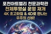 시민행정신문 강갑수 기자 | 포천문화관광재단이 운영하는 포천아트밸리 천문과학관이 약 1년간의 준비와 개선 사업을 마치고, 3월 4일부터 새롭게 단장한 천체투영실 운영을 재개한다. 2014년 개관한 포천아트밸리 천문과학관은 연간 약 30만 명의 관람객이 찾는 경기 북부 대표 과학문화시설로 자리 잡아 왔다. 그러나 천체투영실 시설 노후화로 관람객 이용에 불편이 발생함에 따라, 포천문화관광재단은 지난해부터 시설 개선 사업을 추진했다. 이번 개선 사업은 ‘오감을 자극하는 몰입형 우주 체험’을 목표로 진행됐다. 기존 장비를 전면 교체하고 4케이(K) 초고해상도 영상 시스템을 도입해 실제 우주 공간에 있는 듯한 생생한 시각적 경험을 제공하도록 구성했다. 또한 영상 흐름에 따라 좌석이 움직이는 모션 장비를 설치해 4디(D) 체험형 콘텐츠를 구현했다. 신규 영상 콘텐츠 ‘콤콤(미지의 행성을 찾아 떠나는 우주 여행)’을 비롯해 스카이다이빙, 달 탐사 등 다양한 체험형 영상을 순차적으로 상영할 예정이다. 이를 통해 어린이들에게는 우주와 과학에 대한 꿈과 호기심을, 성인 관람객에게는 색다른 과학문화 체험을 제공할 것으로 기대된다.