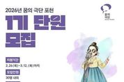 시민행정신문 강갑수 기자 | 포천문화관광재단은 지역 아동·청소년을 위한 문화예술교육 프로그램 ‘2026 꿈의 극단 포천’의 1기 신규 단원을 오는 3월 12일까지 모집한다. ‘꿈의 극단’은 문화체육관광부가 주최하고 한국문화예술교육진흥원과 포천문화관광재단이 주관하며 포천시가 후원하는 사업으로, 아동·청소년이 예술 활동을 통해 자존감을 키우고 공동체 의식을 함양할 수 있도록 지원하는 문화예술교육 프로그램이다. 이번 ‘2026 꿈의 극단 포천’은 일반적인 연극 교육을 넘어 한국 고유의 전통 소리와 춤, 악기가 어우러지는 ‘국극(전통 뮤지컬)’을 특화 교육 과정으로 운영한다. 이를 통해 지역 아동·청소년들이 전통 예술을 놀이처럼 친숙하게 접하고, 우리 문화에 대한 이해와 창의적 표현 능력을 함께 키울 수 있도록 지원할 계획이다. 모집 대상은 초등학교 3학년부터 중학교 2학년까지이며, 해당 연령에 포함되지 않는 초등학교 1·2학년 아동도 ‘예비 단원’으로 신청할 수 있다. 모집 인원은 총 30명이다. 최종 선발된 단원에게는 오는 4월부터 11월까지 포천38문화예술창작소에서 매주 월요일 오후 4시부터 7시까지