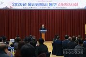시민행정신문 강갑수 기자 | 울산 동구는 1월 15일 오전 10시 30분 동구청 2층 대강당에서 2026년 울산광역시 동구 신년 인사회를 개최했다. 이번 신년 인사회는 동울산청년회의소(회장 전종현)가 주관한 것으로 김종훈 동구청장을 비롯한 동구 지역 각급 기관·단체장 200여 명이 참석하여, 구정 발전을 위한 덕담과 화합의 시간을 나눴다. 이날 행사에서는 ‘AI에게 동구의 미래를 묻다’라는 주제로 인공지능 프로그램을 활용해 동구청 직원들이 직접 제작한, ‘다시 뛰는 심장, 2040 울산 동구’ 영상을 함께 시청하며 동구의 미래를 그려보는 흥미로운 시간을 마련했다. 김종훈 구청장은 지난 3년 반의 시간 동안 ‘더 잘 사는 동구’를 목표로, 구청과 각급 기관단체가 함께 동구 주민의 더 나은 삶을 위해 힘써 왔다”라며 각급 기관·단체장들에게 감사의 인사를 전했다. 또한 “앞으로 산업과 도시의 구조 자체가 급변하는 미래를 맞이하여 한 단계 더 도약하고 성장하는 동구를 만들기 위해 기관·단체·기업이 손잡고 미래의 힘찬 여정을 함께해 주시길 바란다”라고 말했다.