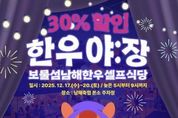 시민행정신문 강갑수 기자 | 남해군은 연말을 맞아 오는 12월 17일부터 20일까지 4일간, 매일 오후 5시부터 9시까지 남해축협 본소 주차장에서 ‘한우야:장(보물섬남해한우 셀프식당)’을 운영한다고 밝혔다. 이번 행사는 얼마 전 군민과 상인들의 뜨거운 호응 속에 마무리된 ‘남해의 맛 – 화전야:장(花田夜:場)’의 열기를 이어받아 군민들에게 겨울밤, 야외 테이블에서 프리미엄 한우 코스를 즐길 수 있는 특별한 경험을 제공하기 위해 마련됐다. 행사 기간 동안 마트에서 100g당 17,000원~13,100원에 판매되는 1++, 1+ 등급 보물섬남해한우(등심, 안심 및 특수부위)를 30% 할인된 가격으로 현장에서 구워 먹을 수 있다. 한편, 예로부터 우리 민족은 겨울철에 쇠고기를 즐겨 먹었는데 음력 10월이면 숯불을 지핀 화로에 번철을 놓고 양념한 쇠고기와 여러 재료를 함께 구워 둘러앉아 나누던 풍속인 난로회(煖爐會)가 있었으며, '열하일기'를 집필한 연암 박지원은 “겨울철 눈 오는 날, 친구를 불러 고기를 구워 먹으니 신선이 사는 곳이 부럽지 않다”고 기록했다.