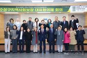 시민행정신문 강갑수 기자 | 대구 수성구는 지난달 27일 구청 대강당에서 지역 사회보장 증진과 복지서비스 제공을 위한 민관협력기구인 수성구 지역사회보장협의체(대표) 회의를 개최했다. 이날 대표협의체 위원 27명이 참석해 ▲2026년 운영 계획 보고 ▲동(洞) 지역사회보장협의체 특화사업 심의 ▲제5기 지역사회보장 계획 2025 연차별 시행 결과 심의 ▲제6기 지역사회보장계획 수립 안내 등 주요 안건을 논의했다. 수성구 지역사회보장협의체는 2023년 제10회 ‘희망수성 복지한마당’ 개최 이후, 지난해에는 정책 개발 중심의 ‘희망수성 복지아카데미’로 운영 방향을 조정했다. 다만 주민 참여와 현장 중심의 복지 정보를 제공받을 수 있는 ‘화합과 소통의 장’에 대한 요구가 지속됨에 따라, 올해 10월 24일 수성못 상화동산에서 제11회 ‘희망수성 복지한마당’을 개최할 예정이다. 또한 ‘우리 마을은 우리가 지킨다’는 방향 아래 위기가구 발굴과 지역 현안 해결을 위한 마을건강복지계획을 확대 추진한다. 주민이 주체가 되어 지역 문제를 논의하고 해결 방안을 모색하는 참여형 복지 체계를 강화한다는 방침이다