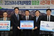 시민행정신문 강갑수 기자 | (재)2026여수세계섬박람회조직위원회는 4월 2일 전남도청 VIP실에서 탑솔라㈜와 ‘2026여수세계섬박람회 입장권 구매약정식’을 개최했다고 밝혔다. 이날 약정식에는 유병진 탑솔라㈜ 대표이사, 황기연 전라남도지사 권한대행과 정현구 여수시장 권한대행, 김종기 조직위 사무총장 등이 참석했으며, 탑솔라㈜는 2천만 원 상당의 입장권을 구매하기로 약정했다. 전남에 본점을 둔 탑솔라㈜는 태양광 발전 사업을 기반으로 신재생에너지 분야에서 성장하고 있는 기업으로, 친환경 에너지 확산과 지역사회 발전에 기여하고 있다. 현재 전남개발공사와 공동으로 무안군·영광군에 BESS 160MW를 추진 중이며, 태양광발전 누적 시공용량 1.6GW, 에너지저장장치 1.1GWh 시공 등 대한민국 대표 신재생 에너지기업으로 자리매김했다. 유병진 대표이사는 “2026여수세계섬박람회가 성공적으로 개최되기를 바라는 마음으로 이번 약정에 참여하게 됐다”며 “앞으로도 지역사회와 상생하며 박람회 성공을 위해 지속적인 관심과 지원을 이어가겠다”고 말했다. 김종기 사무총장은 “기업의 참여는 박람회 성공 개최를