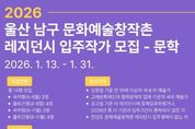 시민행정신문 강갑수 기자 | 고래문화재단이 운영하는 울산 남구 문화예술창작촌이 2026년도 레지던시 사업에 참여할 입주작가를 1월 13일부터 1월 31일까지 공개 모집한다. 공개모집 분야는 문학, 시각·예술 2개 분야로 문학 분야는 장생포 아트스테이에서 시, 소설, 아동문학, 희곡, 수필 등 다양한 장르의 작가 총 14명에게 4월부터 3개월 단위로 운영한다. 시각예술 분야는 창작스튜디오 131에서 회화, 조각, 사진, 설치, 미디어 등 장르의 예술가 3명에게 3월부터 11월까지 9개월간 작업실과 프로그램 연계 혜택을 지원하게 된다. 특히 올해 문학 분야는 지역에 새로운 문학적 시선을 유입하고 차세대 작가들의 성장 기반을 마련하고자 예비·신진 작가 중심의 모집을 통해 더 많은 청년 창작자들이 창작 활동을 시작하고 지속할 수 있도록 지원 폭을 확대할 예정이다. 고래문화재단은 추후 서류 검토와 인터뷰 심사를 거쳐 최종 입주작가를 선정할 계획이며 선정된 예술가에게는 작업실 제공과 함께 창작지원금, 워크숍 등의 혜택이 주어진다. 모집 접수는 1월 31일 토요일 오후 5시까지 진행되며 신청 서류