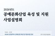시민행정신문 강갑수 기자 | 인천테크노파크(인천TP)는 오는 13일 인천기업경영지원센터(송도 미추홀타워 3층)에서 ‘2026년도 인천광역시 공예문화산업 육성 및 지원사업 설명회’를 개최한다고 밝혔다. 이번 설명회는 인천광역시가 주최하고 인천TP가 주관한다. 지역 공예기업 및 공예인 등을 대상으로 2026년도 공예산업 지원사업의 추진 방향과 세부 내용을 공유하기 위해 마련됐다. 설명회에서는 인천광역시 공예산업 육성 및 지원사업과 한국공예·디자인문화진흥원의 정부 공예지원사업을 연계해 소개하고 질의응답을 진행한다. 지자체와 중앙정부 지원사업을 한자리에서 종합적으로 이해할 수 있도록 각 기관 관계자가 참여해 사업을 안내할 예정이다. 행사는 3월 13일 오후 1시 30분부터 3시까지 인천기업경영지원센터 비즈니스 라운지에서 진행되며, 참가 신청은 포스터에 있는 QR코드를 통해 할 수 있다. 자세한 사항은 인천TP 디자인지원센터 담당자로 문의하면 된다. 인천TP는 이번 설명회를 통해 2026년도 공예산업 지원사업 참여를 확대하고, 지역 공예인의 네트워크 형성과 사업 이해도를 높일 계획이