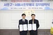 시민행정신문 강갑수 기자 | 서울 서초구는 16일 서초구청 5층 구청장실에서 서초우체국과 ‘서리풀 안부살핌 우편서비스 사업’ 추진을 위한 업무협약을 체결했다고 밝혔다. 이번 협약은 행전안전부가 주관하는 ‘2026년 읍면동 스마트 복지·안전 개선모델 지원사업’(안부살핌 우편서비스 사업 부문) 공모에 서초구가 서울시 자치구 중 유일하게 선정된 데 따른 것으로, 구는 오는 4월부터 12월까지 ‘서리풀 안부살핌 우편서비스 사업’을 본격 추진할 계획이다. 사업은 사회적 고립가구 중 지역사회 집중관리가 필요한 가구를 선정해 주기적으로 안부를 확인하고 월 2회 생필품을 택배로 전달하는 방식으로 운영된다. 우체국은 서초구 지원 물품을 대상가구에 배송하는 과정에서 집배원이 직접 가정을 방문해 안부를 확인하고, 건강 상태와 주거·위생 환경 등 현장에서 확인된 위기 징후를 구에 신속히 회신한다. 구는 전달받은 안부 확인 결과와 위기 정보를 바탕으로 긴급지원, 돌봄, 사례관리 등 맞춤형 복지서비스를 빠르게 연계해 복지사각지대 해소와 위기가구 지원을 강화할 예정이다. 한편, 서초구와 서초우체국은 2023년부터 ‘서리풀 복지등기우편 서
