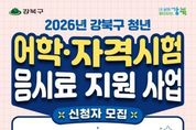 시민행정신문 강갑수 기자 | 서울 강북구는 미취업 청년의 취업 준비 비용 부담을 덜기 위해 ‘청년 어학·자격시험 응시료 지원 사업’을 전년보다 확대 시행하고, 총 900명을 모집한다. 이는 지난해보다 200명 늘어난 규모다. 이번 사업은 취업 준비 과정에서 반복적으로 발생하는 시험 응시료 부담을 완화하고 청년들의 자기계발과 취업 역량 강화를 지원하기 위해 추진된다. 구는 예산을 확대해 더 많은 청년이 혜택을 받을 수 있도록 지원 인원을 늘렸다. 지원 대상은 신청일 기준 강북구에 주민등록이 되어 있거나 강북구 소재 대학에 재학 또는 휴학 중인 19세 이상 39세 이하 미취업 청년이다. 지원 대상 시험은 2026년 1월 1일 이후 응시한 ▲어학시험 ▲국가기술(전문)자격시험 ▲국가공인 민간자격시험 ▲한국사능력검정시험 등이며, 응시 횟수와 관계없이 1인당 최대 10만원 범위에서 실제 응시료를 지원한다. 신청기간은 2026년 4월 1일부터 12월 11일까지이며, 신청을 원하는 청년은 구비서류를 갖춰 일자리청년과(도봉로 323 용신빌딩 2층)로 방문하거나 이메일로 제출하면 된다. 다만 서울시 청년