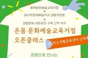 시민행정신문 기자 | 제천문화재단은 오는 11월 8일 하소생활문화센터 산책 2층 예술산책에서 '2025 생활문화 네트워크 구축 '산책 지기'' 사업의 일환으로 ‘생활문화 오픈클래스 2회차’를 개최한다고 밝혔다. 이번 오픈클래스는 문화예술교육 전문 사회적기업 온몸 주식회사와 협력해 진행되며, ‘온몸으로 배우고, 함께 나누는 문화예술교육의 첫걸음!’이라는 주제로 문화예술교육 현장의 실제 사례와 참여형 체험 프로그램을 함께 선보인다. 행사는 오전과 오후로 나뉘어 진행된다. 1부(10:00~12:00) 강연 ‘온몸으로 만나는 문화예술교육 첫 산책’에서는 온몸의 진혜경 강사가 문화예술교육 거점 운영 사례를 발표하고, ‘가끔은 문화예술교육자 – 참여자에서 교육자로 성장하기’라는 주제의 토크쇼를 통해 시민들과 소통한다. 2부(13:00~15:00) 체험 프로그램에서는 온몸의 대표 교육 브랜드 〈안녕, 몸〉을 함께 체험하고, ‘나만의 문화예술교육 브랜드 프로그램 만들기’ 실습을 통해 참여자 스스로 문화예술교육자로 성장할 수 있는 계기를 마련한다. 이번 오픈클래스는 문화예술교육자로 성장하고 싶은 제천시 예술인,
