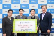 시민행정신문 강갑수 기자 | 대전 유성구는 23일 한국SMC(주)(공장장 민경호)가 설 명절을 앞두고 저소득 취약계층 지원을 위해 유성구행복누리재단에 후원금 500만 원을 기탁했다고 밝혔다. 이번에 전달된 후원금은 취약계층 대상 설 명절 선물 세트 지원 사업에 활용될 예정으로, 한국SMC는 2024년부터 총 2,000만 원을 후원하며 지역사회 나눔 활동에 동참하고 있다. 한국SMC는 산업용 자동화 제어기기 전문 기업으로 유성구에 생산공장을 두고 있으며, 지난해에는 유성구 구룡동에 대전 제2공장을 준공해 지역경제 활성화와 일자리 창출에도 이바지하고 있다. 같은 날 트리풀시티9단지 입주민 일동도 취약계층 지원을 위해 유성구행복누리재단에 후원금 200만 원을 기탁했다. 전달된 후원금은 틈새계층을 대상으로 한 생계비·의료비와 정서 안정·긴급 지원비 등으로 활용될 예정으로, 입주민 일동은 2018년부터 후원금과 명절 선물 세트 기탁을 이어오며, 나눔 문화 확산에 모범 역할을 하고 있다. 앞서 지난 22일에는 상대동 주민자치위원회(회장 안재영)가 저소득가구를 위해 아동 내의·휴지·과일·즉석식품 등