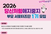 시민행정신문 기자 | 부산시는 수요자 중심의 육아 정책 소통을 강화하기 위해 제1기 '당신처럼 애지중지 부모 서포터즈단'을 구성하고, 이달부터 본격적인 홍보 활동을 시작한다고 밝혔다. 시는 부산형 육아정책 브랜드 '당신처럼 애지중지'와 관련한 주요 출산·육아 정책을 시민 눈높이에서 알기 쉽게 전달하기 위해 홍보단을 운영한다. 지난 1월 공개 모집을 통해 선정된 1기 홍보단 20명은 2개월간 활동하며, 사회관계망서비스(SNS)·지역 공동체(커뮤니티) 등 다양한 온라인 채널을 통해 부산의 육아 정책을 소개하는 역할을 한다. 시는 홍보단 신청자 중 개인 사회관계망서비스(SNS) 활동이 활발하고 지역 내 육아 소통에 적극적인 부모 20명을 선발했다. 홍보단은 공공형 키즈카페 등 육아 지원시설 이용 체험, 시 주요 양육지원 시책, 부모-자녀 참여 프로그램 등 정책 체감도가 높은 콘텐츠를 중심으로 홍보할 계획이다. 올 한 해 동안 기수별 20명씩, 5개 기수, 총 100명의 영유아 자녀를 둔 부모들이 릴레이 형식으로 홍보단 활동에 참여한다. 홍보단 운영 기간은 2월부터 11월까지이고