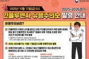 시민행정신문 강갑수 기자 | 화순군은 질병관리청이 지난 17일 인플루엔자 유행주의보를 발령함에 따라, 호흡기 감염병 예방 수칙 준수 및 인플루엔자 예방접종을 당부했다고 23일 밝혔다. 질병관리청에 따르면 인플루엔자 의사환자 표본 감시 결과 의료기관에서 확인된 최근 4주간 의사환자 분율(외래환자 1,000명당)은 △38주 차 8.0명 △39주 차 9.0명 △40주 차 12.1명 △41주 차 14.5명으로 유행 기준(9.1명)을 이미 넘어섰으며, 지난해보다 약 2개월 이른 시점에 발령됐다. 연령대별로는 7~12세가 24.3명, 1~6세가 19.0명으로 나타나 전체 연령군 중 발생률이 가장 높았다. 유행주의보 발령 시 소아, 임신부, 65세 이상 고령자, 만성질환자 등 고위험군 대상 인플루엔자 의심 증상만으로 항바이러스제(타미플루캡슐 등, 리렌자로타디스크) 처방 시 건강보험 요양급여가 적용된다. 인플루엔자 바이러스는 독감을 일으키는 병원체로 주로 환자의 기침이나 콧물 등 호흡기 분비물을 통해 감염된다. 주요 증상은 고열, 기침, 인후통, 근육통 등의 증상을 동반하며, 특히 고령자·임신부, 만