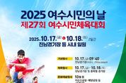 시민행정신문 강갑수 기자 | 여수시는 오는 10월 17일(금)부터 18일(토)까지 이틀간 진남경기장 일원에서 ‘2025 여수시민의 날’ 기념행사를 개최한다. 올해 여수시민의 날은 단순한 기념행사를 넘어 시민이 직접 체감하고 참여하는 ‘축제형 시민의 날’로 새롭게 변화한다. 시는 금요일과 토요일을 연계해 직장인과 가족 단위 시민이 함께할 수 있도록 했으며 공영주차장 및 체육시설 무료 개방, 지역 주요 관광시설과 민간업체와 연계한 시민 할인행사도 함께 진행한다. 행사는 17일 오전 10시 진남경기장에서 열리는 기념식으로 막을 올린다. 시립국악단·시립합창단·어린이합창단의 합동공연을 시작으로 기수단 및 읍면동 입장, 시민헌장 낭독, 여수시민의 상·체육상 시상, 선수대표 선서, 축하 영상 상영 등이 이어진다. 올해 여수시민의 상은 ▲한옥천 여천동 지역사회보장협의체 위원장 ▲김영태 ㈜우주종합건설 대표이사 ▲명경식 여수시체육회장이 수상하며, 여수시 체육상에는 박길철 전남요트협회 실무부회장이 선정됐다. 기념식 후에는 초대가수 김다현의 축하공연과 경품추첨이 진행돼 흥겨운 분위기를 더할 예정