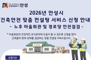 시민행정신문 강갑수 기자 | 안성시는 올해 ‘건축안전 맞춤 컨설팅 서비스(노후 마을회관 및 경로당 안전점검)’를 시행한다고 밝혔다. 건축안전 맞춤 컨설팅 서비스는 관련 법령상 정기 점검 의무가 없어 정확한 실태 진단과 안전 취약 요소 파악에 어려움이 있는 소규모 노후 마을회관 및 경로당을 대상으로 안전점검을 실시해, 건물 노후화로 인한 안전사고를 예방하고 시민의 안전한 생활환경 조성에 기여하고자 시행하는 사업이다. 점검 대상은 '건축물관리법' 제15조에 따른 소규모 노후 건축물 점검 대상 중 안전에 취약하거나 재난의 위험이 있다고 판단되는 마을회관 및 경로당이다. 주요 점검 항목은 ▲ 건축물 주요 부재의 구조적 균열과 변형 상태 ▲ 건축물 비구조체 결함 사항 ▲ 주변 축대, 옹벽, 담장 등의 안전상태 등이며, 점검자가 직접 현장을 방문해 육안점검 방식으로 진행된다. 점검을 희망하는 마을회관 및 경로당의 소유자 또는 관리자는 신청서를 작성해 안성시청 건축과에 방문 접수하거나 등기우편으로 접수할 수 있으며, 신청은 연중 상시 가능하다. 점검 후에는 건축물 관리자에게 점검 결과와 함께 보수·