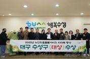 시민행정신문 강갑수 기자 | 대구 수성구는 보건복지부가 실시한 2025년 ‘노인맞춤돌봄서비스 지자체 평가’에서 대상을 수상하며 ‘돌봄 공백 없는 어르신 행복 도시’의 위상을 입증했다. 수성구는 전국 229개 시군구를 대상으로 진행된 이번 평가에서 노인맞춤돌봄서비스 사업 추진 성과 전국 1위를 달성해 보건복지부 장관 기관 표창과 포상금 1,200만 원을 받았다고 밝혔다. 이번 평가는 △노인맞춤돌봄서비스 운영관리 △서비스관리(지역사회 유관 기관 네트워크 체계) △사업 성과 등 정량·정성 지표를 종합적으로 심사해 이뤄졌다. 수성구는 권역 책임제 기반의 전달체계 구축, 민관협력 네트워크, 현장 밀착형 성과관리 등을 통해 연속 돌봄 모델을 안정적으로 구현한 점이 높은 평가를 받았다. 수성구는 찾아가는 홀몸 어르신 전수조사로 신규·위기 대상자를 선제적으로 발굴하고, 유관 기관 네트워크 및 권역별 민관협의체 운영을 통해 기관 간 상호 의뢰·연계 체계를 마련했다. 또한 다양한 특화사업과 스마트 기술을 활용한 인공지능(AI)·사물 인터넷(IoT) 기반 안부·건강관리 등 예방 중심 돌봄서비스를 추진해 돌