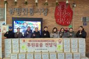 시민행정신문 강갑수 기자 | 광명시장상점가진흥사업협동조합이 설 명절을 앞둔 지난 9일 관내 소외된 이웃을 위한 ‘설맞이 이웃사랑 떡만둣국 세트 나눔 행사’를 개최했다. 이번 나눔은 지난해 12월 시장 내 고객 쉼터에 설치된 크리스마스트리에 후원 금액과 이름을 적은 엽서를 부착하는 ‘나눔 엽서 달기’ 캠페인으로 마련했다. 경기 침체로 어려운 여건 속에서도 시장 상인 63개 점포가 자발적으로 동참하여 총 550만 원의 성금을 모았다. 광명전통시장은 모금액 중 일부를 광명희망나기운동본부에 지정 기탁해 복지 사각지대 지원에 앞장서는 한편, 정성껏 준비한 ‘떡만둣국 선물 세트’ 130박스를 제작해 따뜻한 온정을 나누었다. 준비된 선물 세트는 지역 내 촘촘한 복지망을 통해 골고루 전달했다. ▲광명전통시장 여성회 봉사 대상 어르신 30가구를 시작으로 ▲광명3동 행정복지센터(30박스) ▲광명종합사회복지관(30박스)에 전달했으며, 미래 세대인 아이들을 위해 ▲광명다솜지역아동센터와 ▲어벤저스지역아동센터에도 전해졌다. 광명전통시장의 나눔은 지난 2018년 여성회가 홀몸 어르신 등 125가구에 생필품을 전달