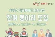 시민행정신문 강갑수 기자 | 광주 동구는 주민 주도의 인문 공동체를 육성하고 인문도시 역량을 강화하기 위한 ‘2026년 인문동아리 지원사업’ 참여 동아리를 오는 15일까지 모집한다고 밝혔다. 이번 사업은 인문도시를 지향하는 동구가 2020년부터 추진해 온 주민 참여형 사업으로, 다양한 독서 기반 활동을 통해 일상 속 인문 가치 확산과 독서문화 진작을 목표로 하고 있다. 특히 책을 함께 읽고 토론하는 인문독서 동아리는 개인의 사유를 확장하고 타인과의 공감·소통을 이끄는 생활 속 인문 실천의 장으로 주목받고 있다. 동구는 이러한 자발적 독서공동체를 통해 사회적 공감대를 형성하고 지역의 다양한 문제를 함께 성찰하는 인문도시를 구현해 나간다는 방침이다. 신청 대상은 광주 동구 관내에서 활동하는 청년·직장인·주민 등 5인 이상으로 구성된 소모임이다. 월 1회 이상 정기적으로 모임을 운영해야 하며, 독서 토론·글쓰기·낭독 등 책을 기반으로 한 다양한 활동을 수행하는 동아리면 신청할 수 있다. 접수 기간은 이달 15일까지이며, 동구청 누리집에서 신청서 등 필요한 서류를 내려받아 이메일로 제출하거나 동구청 인문도